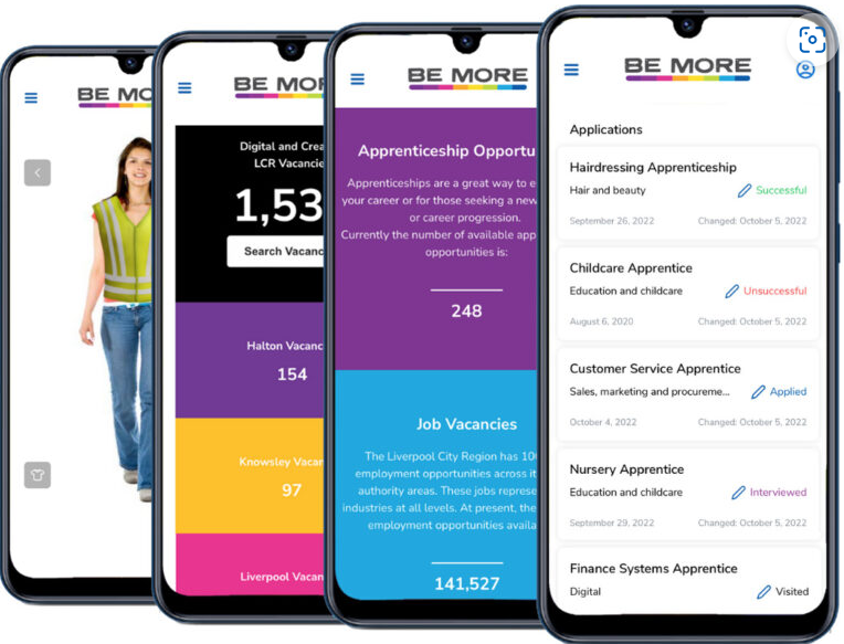 Be More is Liverpool City Region’s Apprenticeship and Careers portal. You can search for apprenticeship opportunities across the region and apply here. You can also see where vacancies are available on the LCR map and filter your search to suit you.