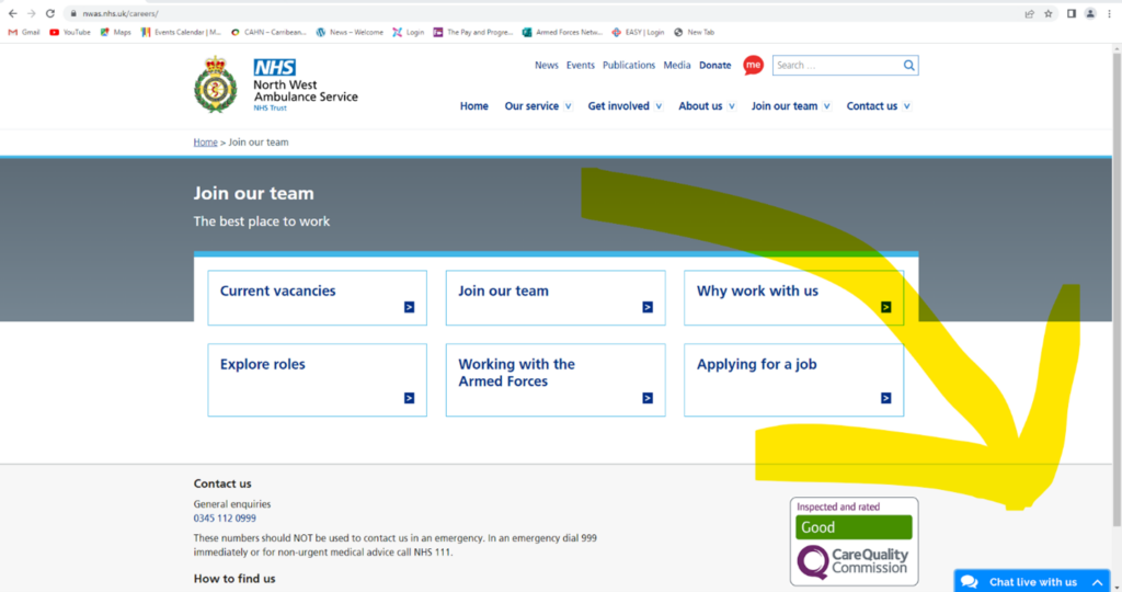 Live Chat is a great method of finding out about careers at North West Ambulance service NHS Trust, just by using instant messaging ā very like using their favourite chat apps, job seekers can just type their questions, use emojis, attach files, for example copy qualifications for checking eligibility, and get an instant response from one of our expert panel members. It aims to allow potential applicants to speak directly with our members of staff and works via a pop-up chat window within NWASā website during specified times:
