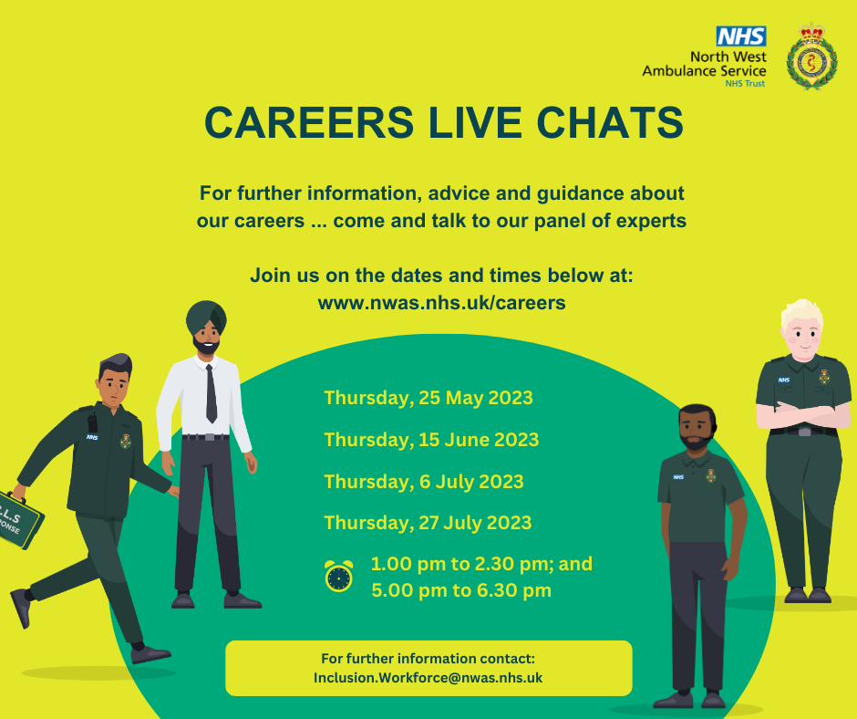 North West Ambulance Service (NWAS) are hosting a number of live careers chats from next week through to the end of July…